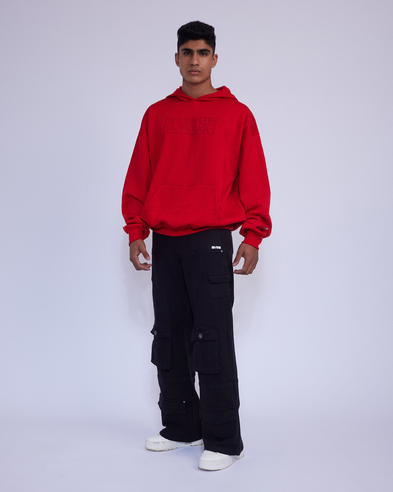 Red hoodie made in sweatshirt fabric from a cotton blend with a soft brushed fleece inside. With dropped shoulders, long sleeves, a kangaroo pocket and wide ribbing at the cuffs and hem. A relaxed fit designed to offer a roomy yet not excessively oversized silhouette. Embossed motif in the front.