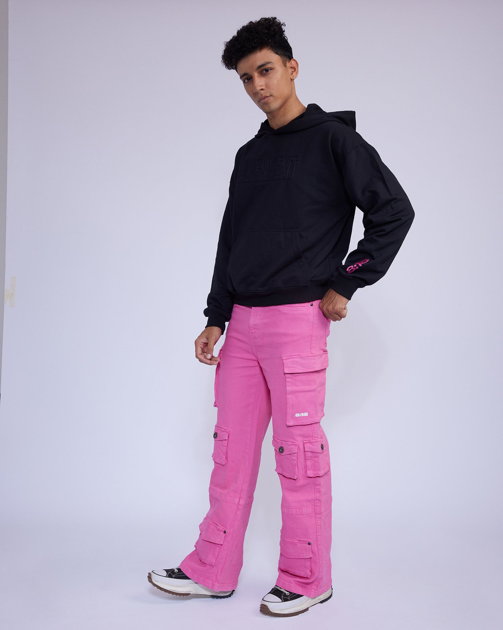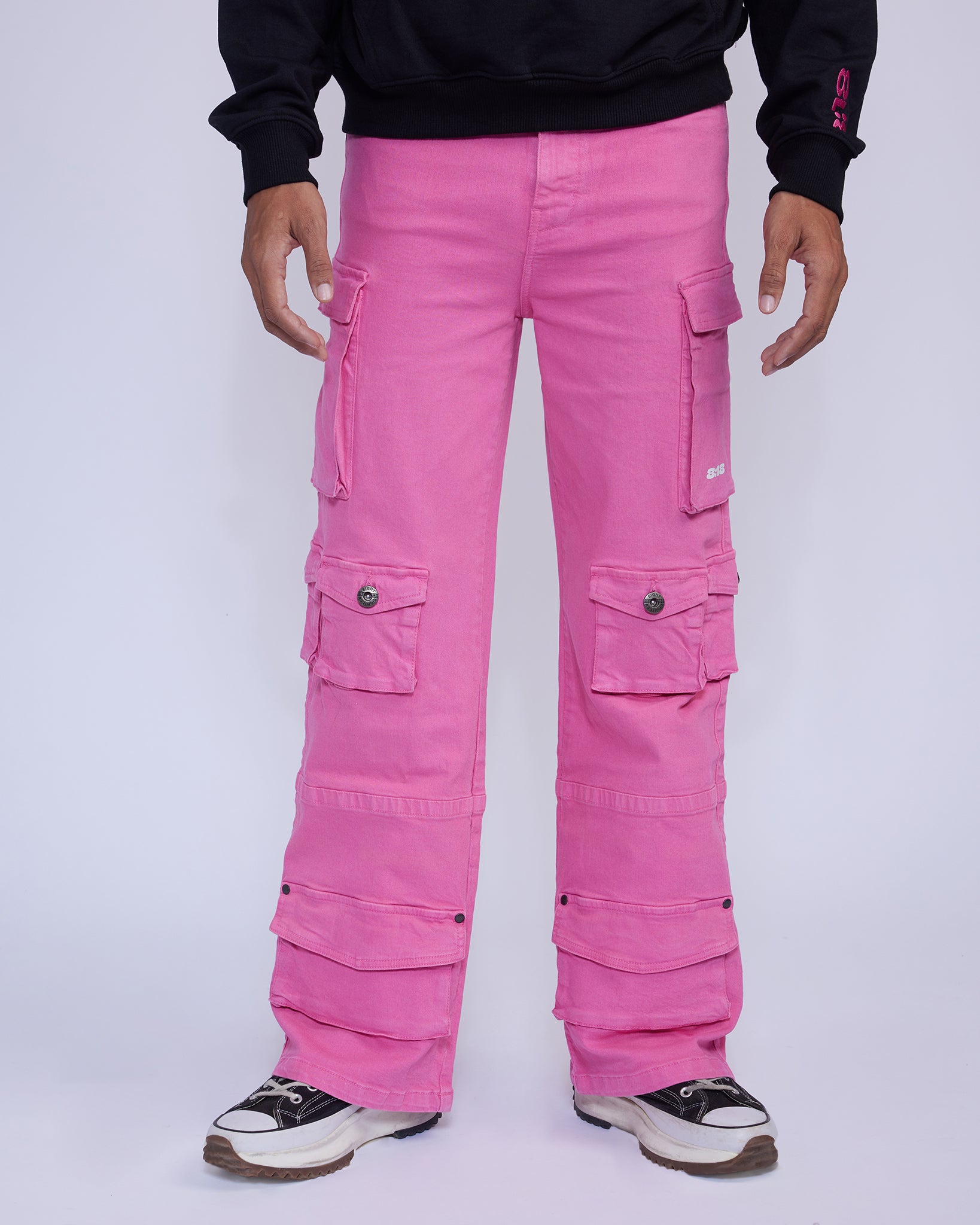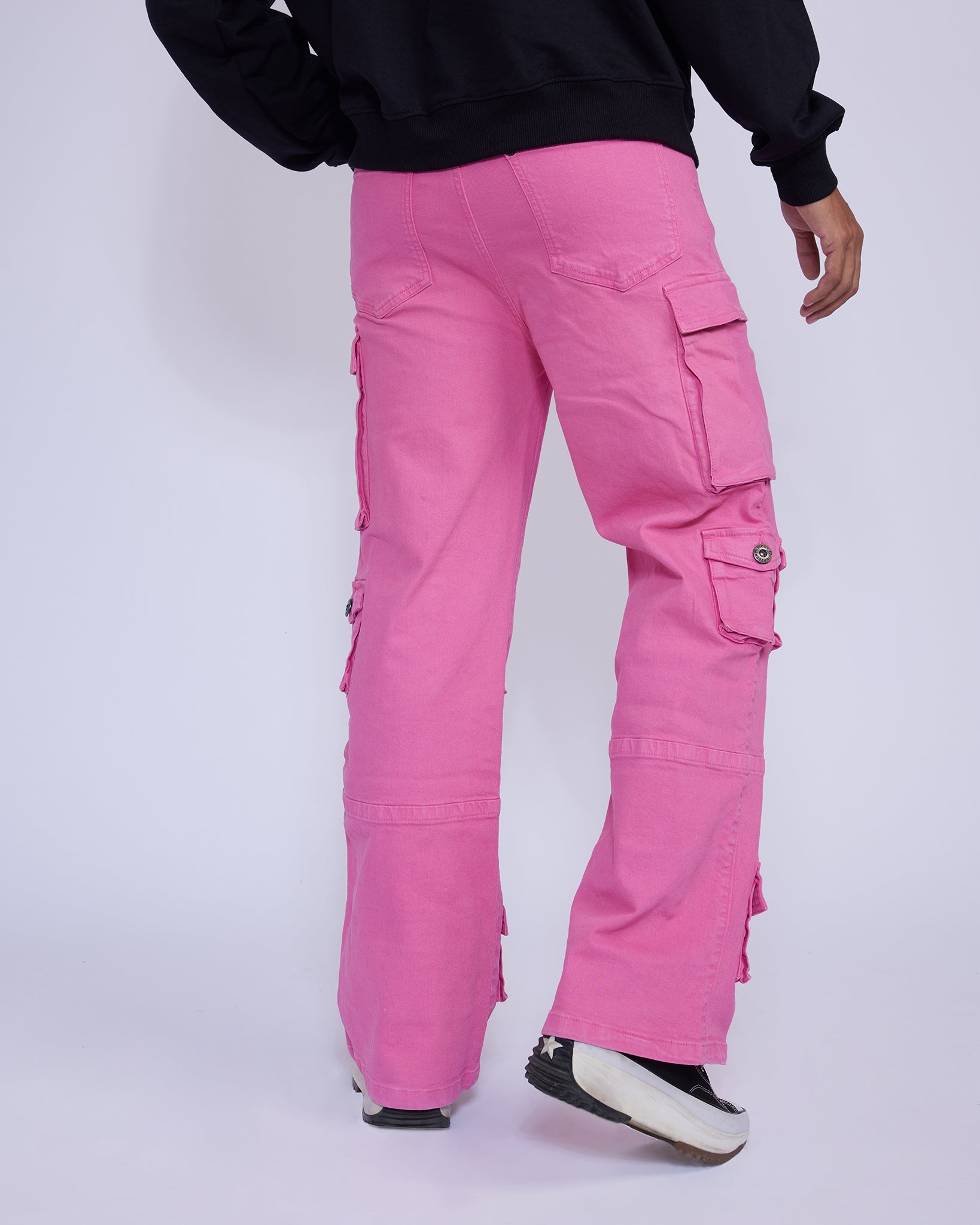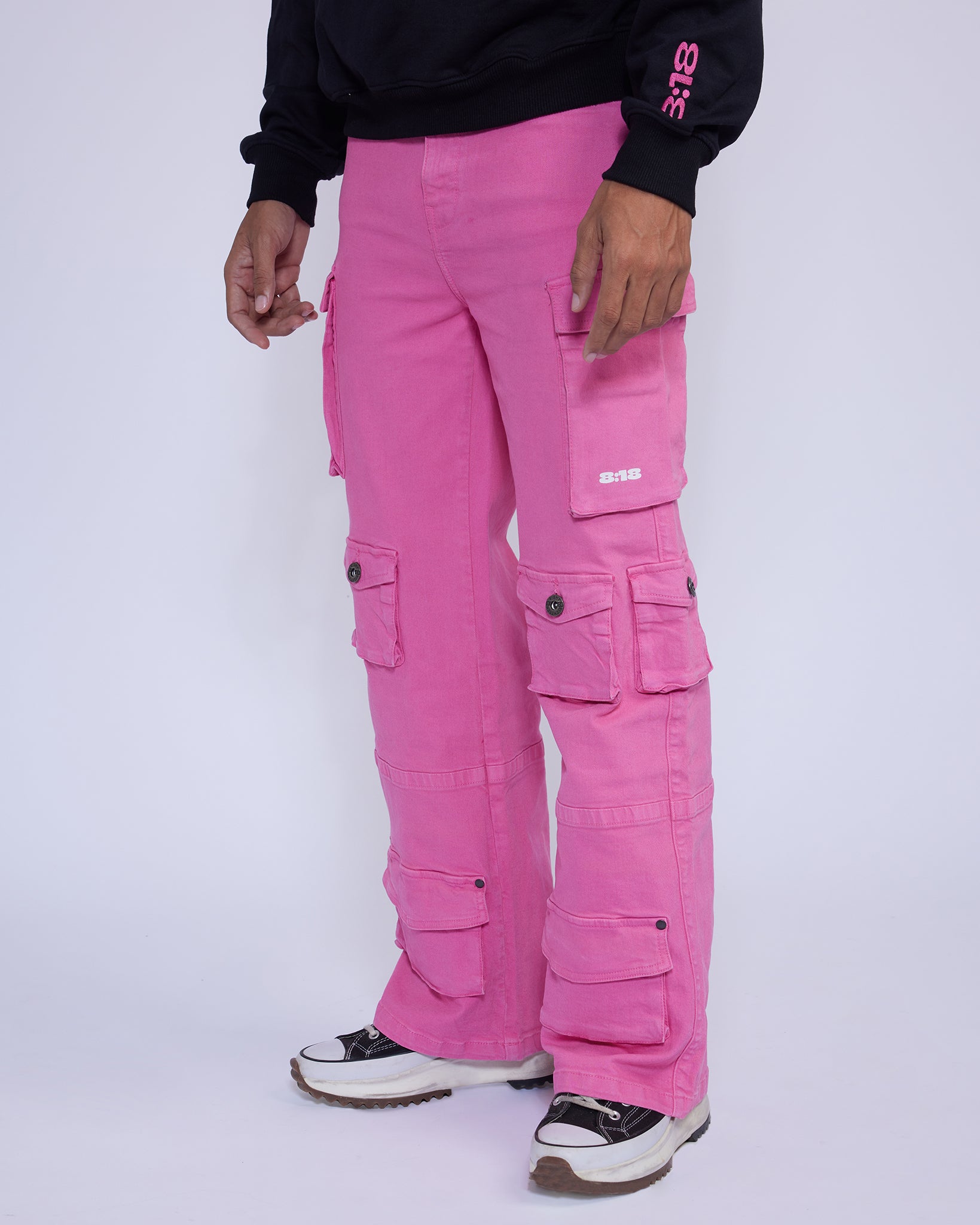 High rised, baggy wide leg fit cargo pants made with over dyed denim fabric. Belt loops, 12 pockets and a back yoke, unisex.