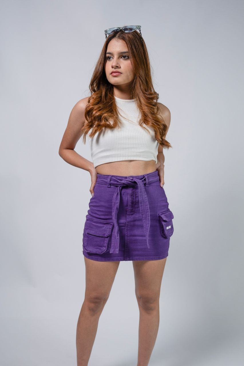 Purple Short Cargo Skirt